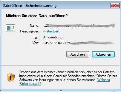 Diese Datei verfügt über keine gültige digitale Signatur, die den Herausgeber verifiziert. Sie sollten nur Software ausführen, die von Herausgebern stammt, denen Sie vertrauen; oder die Sicherheitswarnung: möchten Sie diese Datei ausführen.