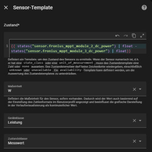 {{ states("sensor.fronius_mppt_module_3_dc_power") | float - states("sensor.fronius_mppt_module_2_dc_power") | float}}