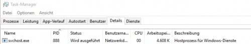 Dazu mit [Strg-Alt-Entf] den Task-Manager öffnen. Bei Windows 10 findest du die PID unter Details und ev. unter Dienste.