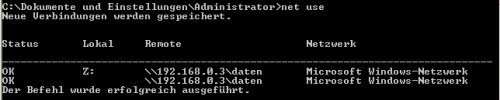 Mittels des Befehls netuse können verbundene Netzlaufwerke angezeigt werden