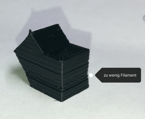 Wenn das Filament bei der Zuführung kurz blockiert wird, wirkt sich das folgendermaßen aus: