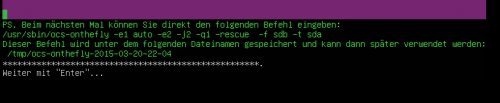 Wenn die Zielfestplatte leer ist startet Clonezilla an dieser Stelle. Befinden sich Daten auf der Zielfestplatte kommt noch einmal ein Dialog bevor der Klonvorgang startet: