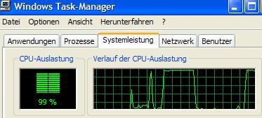 deutlich zu sehen, der etwas ältere Laptop mit nur einem Prozessorkern läuft in der Testphase auf 100% CPU Last: d.h. der Wert hätte noch höher sein können, hätte die CPU mehr Leistung: