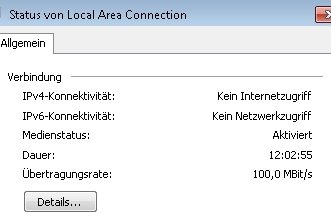um eine Referenz zu haben, hab ich 2 Notebooks mit einem Kabel direkt verbunden und zum Vergleich deren Geschwindigkeit gemessen: