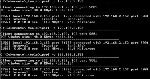 Die Geschwindigkeit habe ich mit iPerf gemessen, siehe LAN / WLAN Speedtest: Geschwindigkeit im Netzwerk testen.