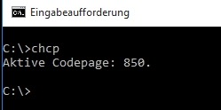 Damit wird die Eingabeaufforderung auf den Zeichensatz 1252 geändert und die mit Notepad abgespeicherte Batch-Datei (im Format 1255) funktioniert.