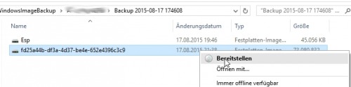 Neben einem kompletten Restore des PC kann die Systemabbildsicherung ganz einfach in der Datenträgerverwaltung gemountet werden und damit einzelne Dateien aus dem Abbild zurückgesichert werden.