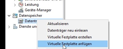 dann auf: "Virtuelle Festplatte anfügen"