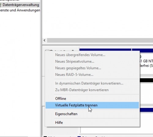 die virtuelle Festplatte wieder trennen