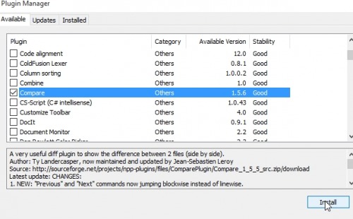then select the plugin "Compare" and "Install".