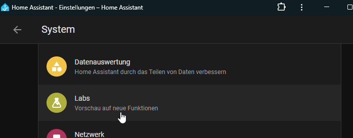 ✓ Home Assistant Vorschau auf neue Funktionen: Labs