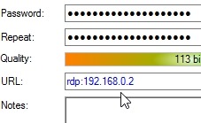 Der Aufruf aus KeePass (URL Eintrag) erfolgt dann mittels folgender URL: rdp:IP (z.B.: rdp:192.168.0.2)