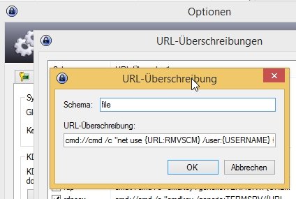 Die URL-Overrides machen KeePass mit der richtigen Befehlszeile zum Remote-Desktop-Manager.
