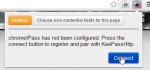 chromeIPass kann bei geöffnetem KeePass eine Verbindung zur Kennwortdatenbank aufbauen. Bei der ersten Verbindung muss das Browserplugin mit KeePass verknüpft werden, dies geschieht mittels „Connect“: