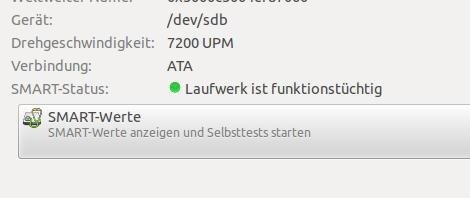 In Ubuntu kann der Smartstatus einfach über die Laufwerksverwaltung (smartmontools) aufgerufen werden, die SetupDVD von Ubuntu (siehe: Ubuntu installieren) ist bootfähig. (siehe auch: Den Computer von USB oder DVD starten )