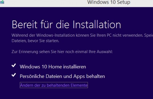 Nachdem Windows 10 heruntergeladen wurde und fehlende Windows Updates installiert wurden, ist der PC bereit für die Installation: