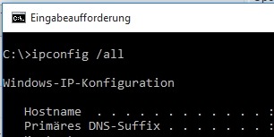 User: dave Man kann auch einfach "Windows-Taste" + "R" eingeben um "Ausführen..." aufzurufenm dann "cmd" eingeben und "ipconfig /all".