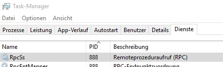 Dazu mit [Strg-Alt-Entf] den Task-Manager öffnen. Bei Windows 10 findest du die PID unter Details und ev. unter Dienste.
