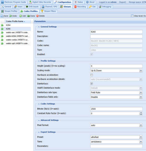 In TVHeadend wird zunächst in den Einstellungen als Default view level: Expert benötigt: