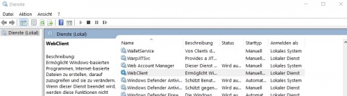 Ein Blick in die "Dienste" verrät uns das Problem. Der Dienst "Webclient" ist nicht gestartet:
