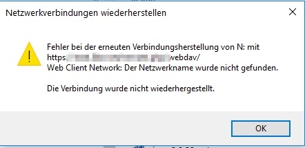 Beim Wiederverbinden einer Webdav-Verbindung kommt dieser Fehler:
