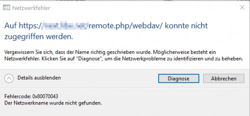 Beim Versuch, eine WebDAV-Freigabe zu verbinden, kann es zu einem Fehler kommen: